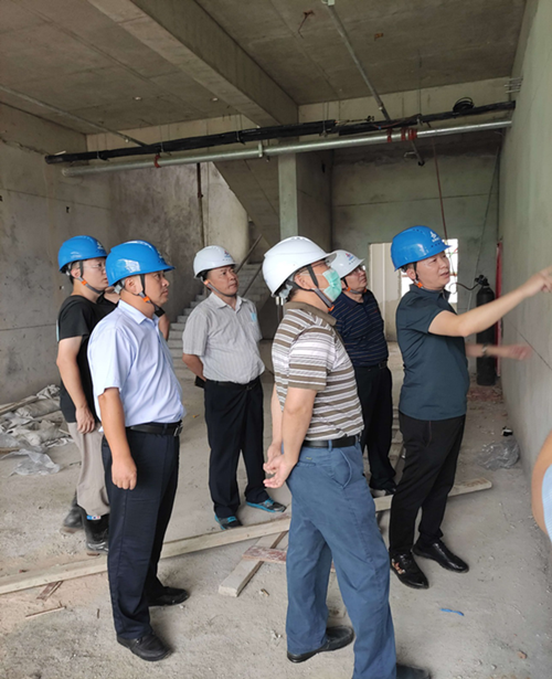 童宗勝一行深入一線,實地查看施工現場工程進度,并召開現場會聽取匯報,叮囑項目負責人要把握時間節點,做好土建施工和裝飾工程的雙配合,全力以赴保障交付。同時指出一定要疫情防控和防暑降溫一起抓,確保工程質量安全,拿出拳頭產品,打造精品工程,展現建工實力。