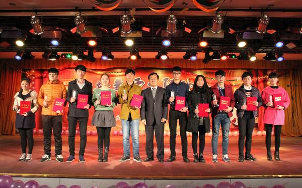 任建設(shè)副校長給獲得“校園十佳技能明星”的同學(xué)頒獎