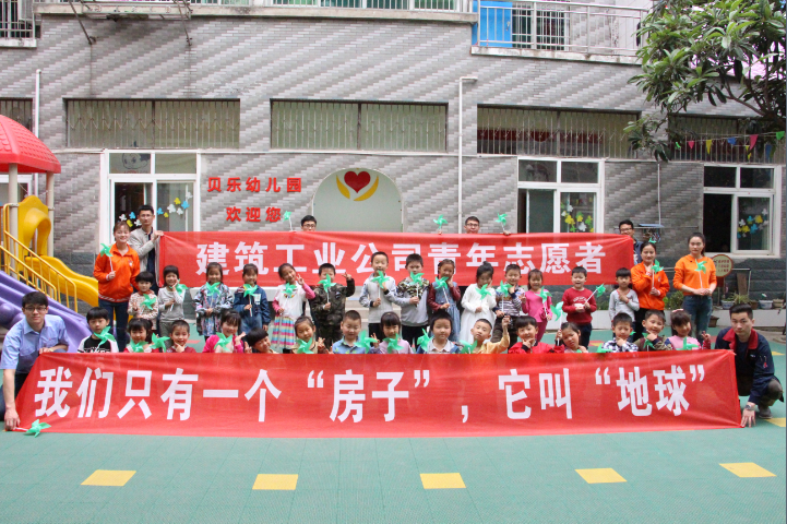 4月25日,建筑工業公司團支部組織青年志愿者來到肥東撮鎮貝樂幼兒園,開展了《我們只有一個“房子”,它叫“地球”》的環保主題教育活動。