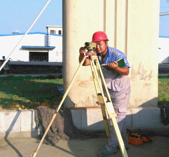 龍河路橋項目是市政橋梁工程,其測量工作精度要求極高,一分一毫的差距都會造成不可挽回的損失,測量員潘瑞 對自己的要求是“分毫都不能差,差分毫都不行”,將誤差控制到毫米級別是他的任務,“左5毫米,后退3毫米。”是他最簡單、最常說的一句話。白天的工作完成,晚上的工作接踵而至,首先是計算第二天需要的數據,這樣就可以省去在現場計算的時間,提高工作效率,其次是完善相關資料,由于測量專業性強,無法配備專職資料員,所有測量資料都需要他自己完成。日積月累的測量工作,讓潘瑞的皮膚越來越黑,熟悉他的人都知道,這是風吹日曬留下的印記,但他卻笑著說:“測量工作追求的是精準和完美,是人生的樂趣。”