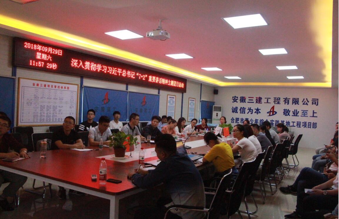 9月29日,安徽三建團委組織合肥地區團干及創建集體青年代表開展了“學習‘7·2’重要講話精神落實團十八大工作部署”主題團日活動。