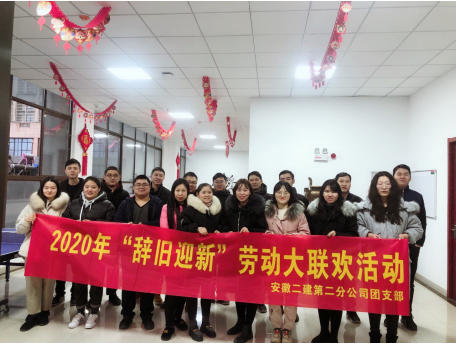 1月16日下午,安徽二建二分公司團支部開展“辭舊迎新”勞動大聯歡活動,旨在凝聚員工的向心力,弘揚“家”文化,在和諧的氛圍中共同營造良好辦公環境和新春氛圍。