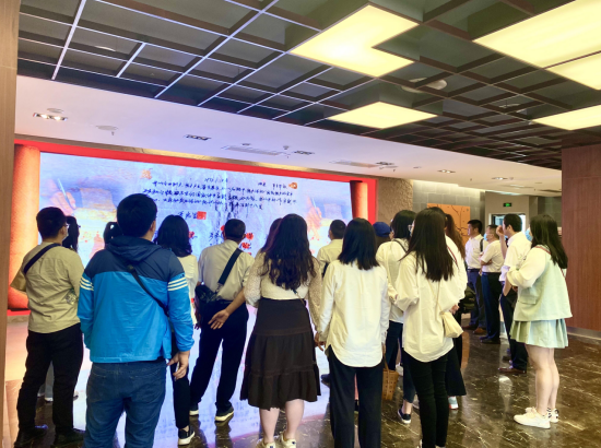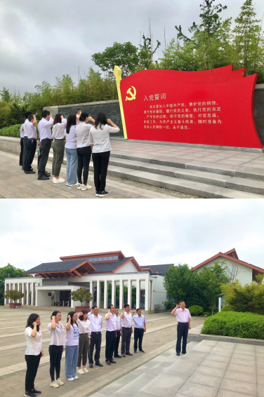 隨后,大家沿著紅色足跡來到了沈浩同志先進事跡陳列館,現場認真聆聽了沈浩同志的先進事跡,在他擔任村領導的六年中,他深入群眾、拉近距離、調研走訪、摸清村情,用心融入到小崗村。在為小崗村脫貧致富忙碌奔波中,三過家門而不入,吸引大學生進村創業、招商引資辦工業、開發旅游促三產等一系列措施,使得小崗村村民生活水平顯著提高,文化生活豐富多彩,精神面貌煥然一新。在學習沈浩同志先進事跡時,大家無不為沈浩扎根小崗、克己奉公、干事創業的崇高品質所感動,更加明白了為什么他能成為小崗村鄉親們三次按下紅手印留下的好干部、人民好公仆。在陳列館門前,黨員面對鮮紅的黨旗,重溫入黨誓詞,莊嚴宣誓。