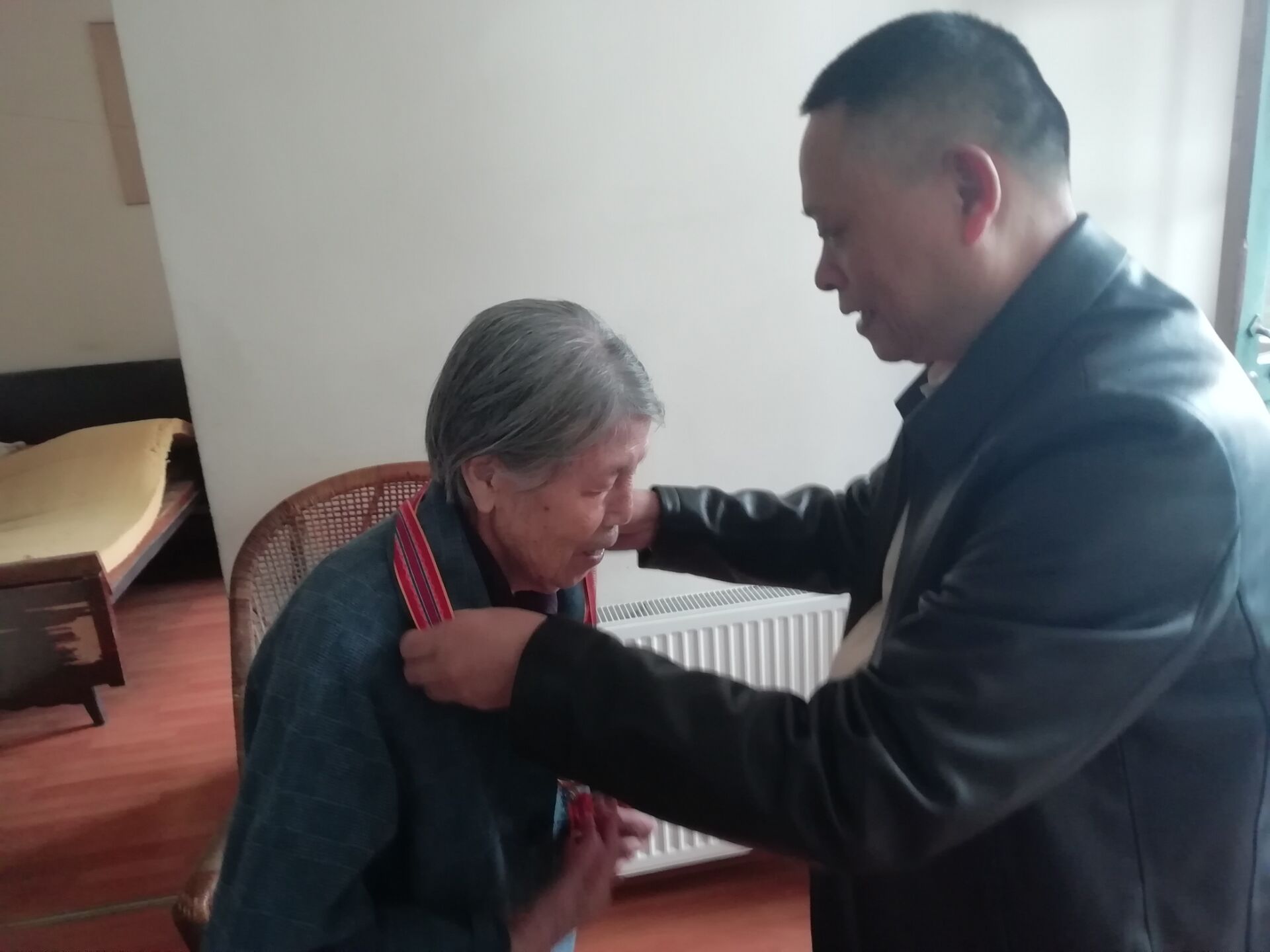 近日,集團(tuán)機(jī)關(guān)黨委書記、離退休辦主任李世龍登門看望慰問了抗美援朝老戰(zhàn)士李素云老人,并送上中央今年統(tǒng)一向抗美援朝老戰(zhàn)士頒發(fā)的“中國人民志愿軍抗美援朝出國作戰(zhàn)70周年”紀(jì)念章。