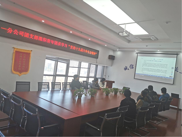 黨旗所指就是團旗所向,12月3日上午,安徽二建第一分公司團支部在會議室組織機關青年團員學習十九屆六中全會精神。