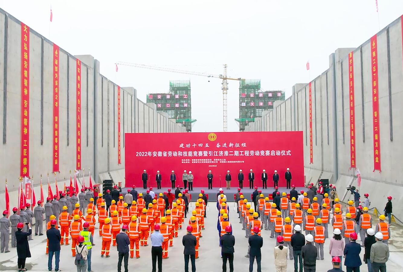 5月11日上午,由安徽省勞動競賽委員會、安徽省總工會主辦,安徽建工集團控股有限公司、安徽省引江濟淮集團有限公司承辦的2022年安徽省勞動和技能競賽暨引江濟淮二期工程勞動競賽啟動儀式在安徽省路港工程有限責任公司承建的引江濟淮工程派河口船閘項目現場舉行。
