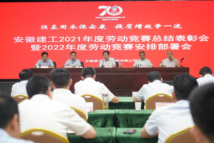 為引導和激勵廣大干部職工立足崗位接續奮斗,快速掀起大干快上勞動熱潮,高標準高質量完成全年目標任務,為打造千億安徽建工、智慧安徽建工、綠色安徽建工、幸福安徽建工貢獻力量,6月21日上午,集團公司在安建大廈三樓會議室舉辦2022年度勞動競賽、“安全生產月”活動啟動儀式暨2021年度勞動競賽總結表彰大會。股份公司黨委副書記、總經理李有貴,股份公司黨委委員、副總經理黃代,股份公司副總經理朱忠明參加會議。股份公司黨委副書記、控股公司工會副主席徐文聯主持會議。