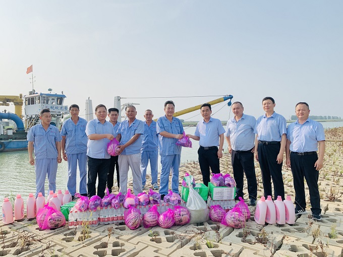 7月19日,公司黨委副書記、總經理杜海峰,公司黨委委員、副總經理董雙武赴引江濟淮疏浚項目“皖蛟龍號”船隊慰問“送清涼”