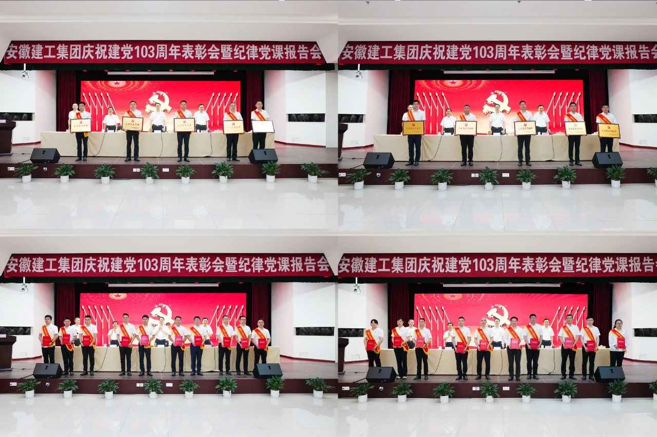 7月3日上午,安徽建工集團黨委召開慶祝建黨103周年表彰會暨紀律黨課報告會,黨委書記、董事長楊善斌出席會議并作題為《以黨紀學習教育縱深推進全面從嚴管黨治黨 為集團轉型發展高質量發展大發展提供堅強紀律保障》的紀律黨課報告。黨委委員、紀委書記、監察專員王汪苗主持會議,建工控股領導班子成員出席會議。
